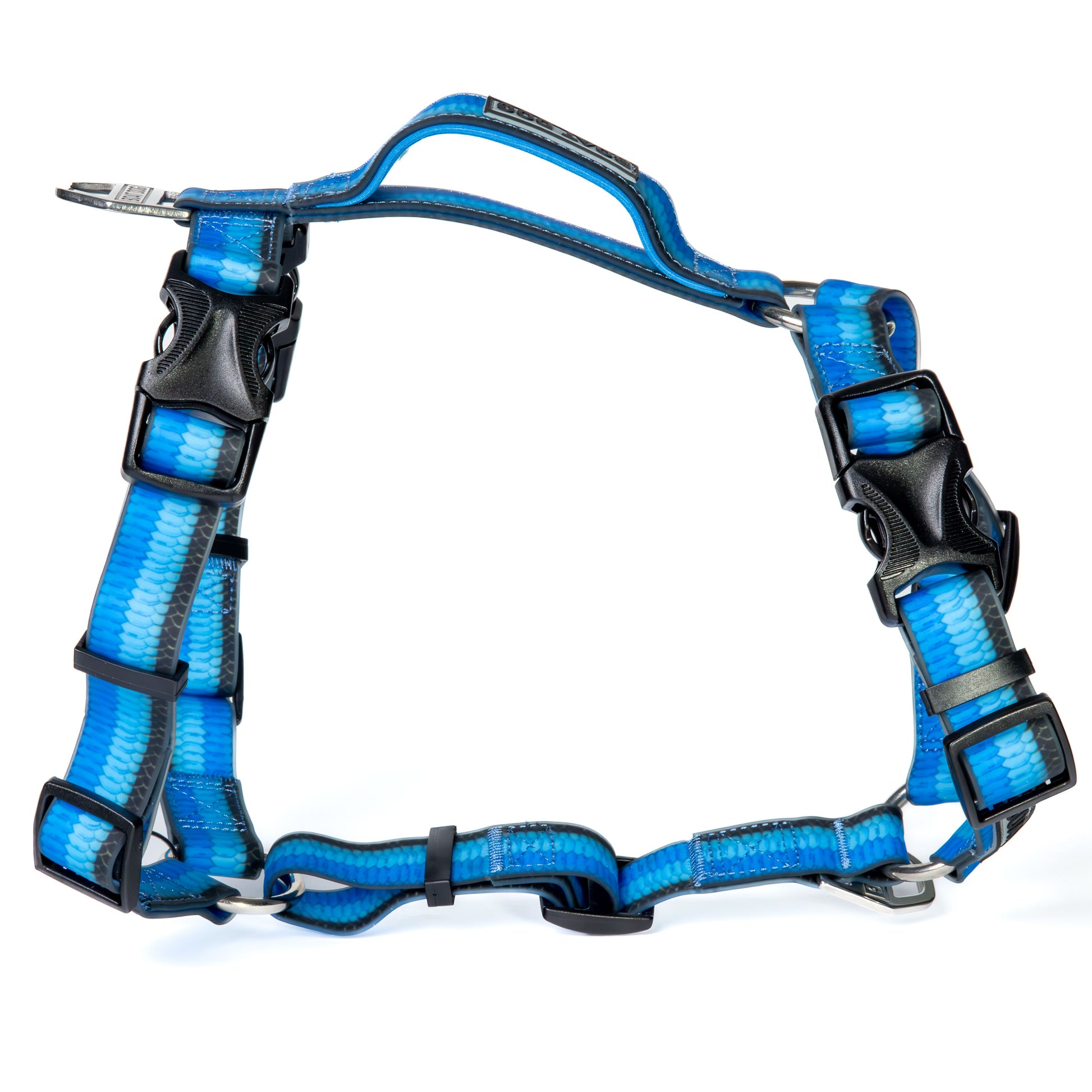 An adjustable waterproof dog harness designed to withstand the harshest environments. Made with PVC coated webbing that features a rugged outer layer that repels water, resists odors and is easy to clean.